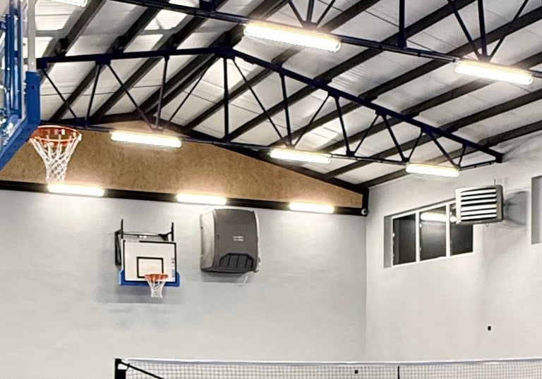 Oświetlenie wejściowe automatycznie załączy się na czas rezerwacji. Nad boiskiem włącz światło wedle potrzeb. W sanitariatach światło na czujkę ruchu.